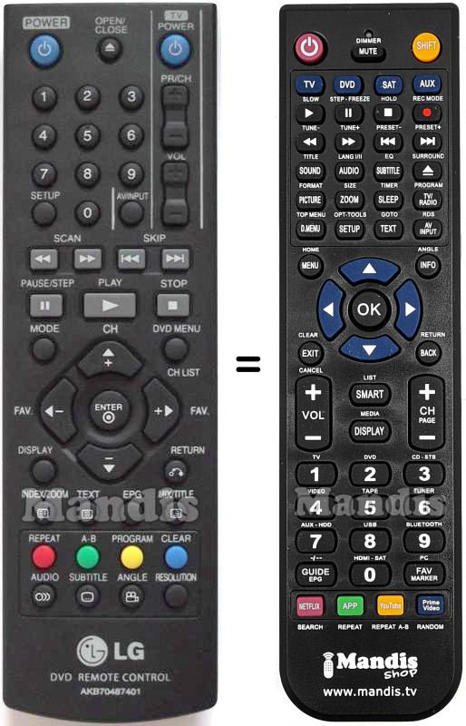 Below, we will show you the correspondence between each button on the original remote control and the button that performs the same function on the replacement remote control. In some cases, you may need to press the SHIFT key before pressing another button to perform certain actions. These additional functions are often not widely used and are included to facilitate understanding of the replacement remote control, or because the original remote control has more buttons than its equivalent.