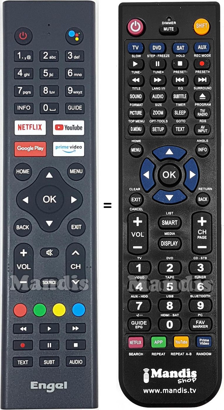 Below, we will show you the correspondence between each button on the original remote control and the button that performs the same function on the replacement remote control. In some cases, you may need to press the SHIFT key before pressing another button to perform certain actions. These additional functions are often not widely used and are included to facilitate understanding of the replacement remote control, or because the original remote control has more buttons than its equivalent.