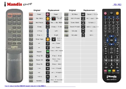 1. Look at the images of the two remote controls: the original (left) and the replacement (right).