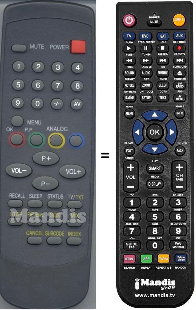 Remote control to replace the original and all its functions.
