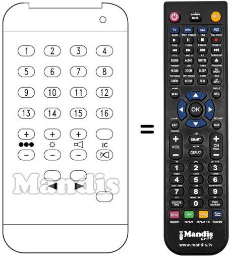 Remote control to replace the original and all its functions.