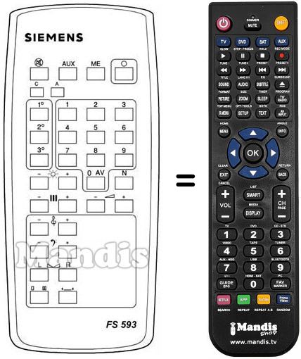 Remote control to replace the original and all its functions.