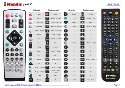 Below, we will show you the correspondence between each button on the original remote control and the button that performs the same function on the replacement remote control. In some cases, you may need to press the SHIFT key before pressing another button to perform certain actions. These additional functions are often not widely used and are included to facilitate understanding of the replacement remote control, or because the original remote control has more buttons than its equivalent.