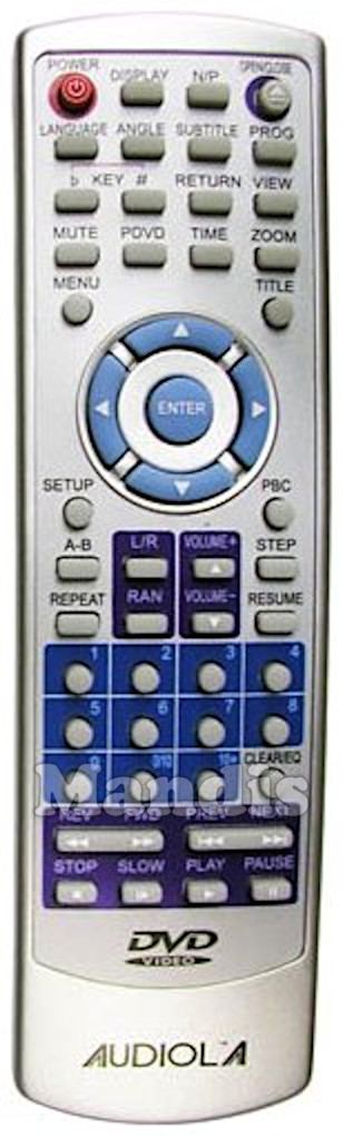 Power, Display, N/P, Open / Close, Language, Angle, Subtitle, Prog, Key b, Key #, Return, View, Mute, PDVD, Time, Zoom, Menu, Title, Up, Left, Enter, Right, Down, Setup, PBC, A-B, Repeat, L/R, RAN, Volume+, Volume-, Step, Resume, 1, 2, 3, 4, 5, 6, 7, 8, 9, 0/10, 10+, Ckear/EQ, REV, FWD, Prev, Next, Stop, Slow, Play, Pause