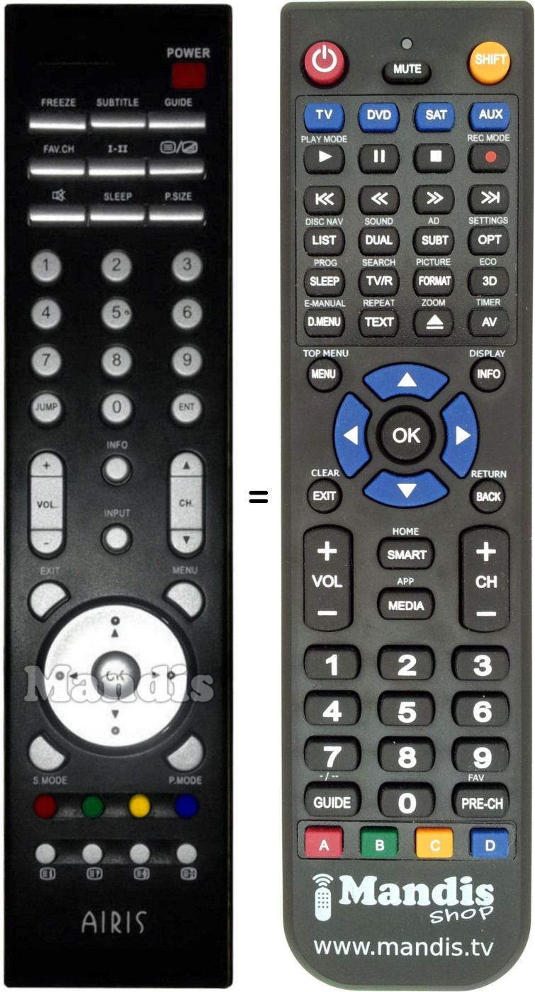 This remote control fully replaces your Airis003 and offers all the functions of the original.