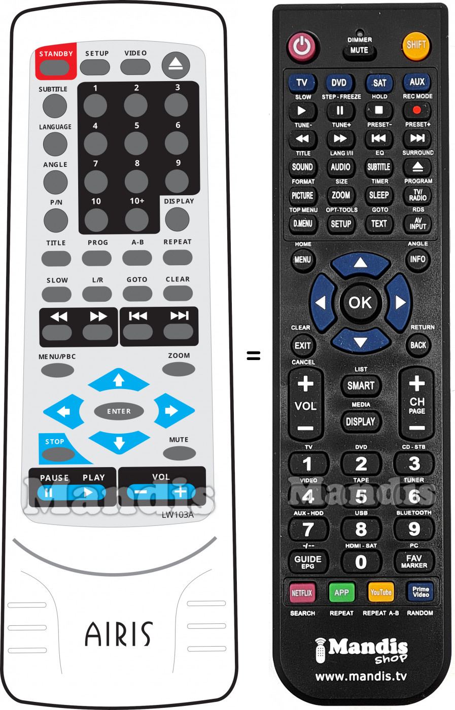 Home > Brands > Remote controls Airis > Remote control for Airis LW103A