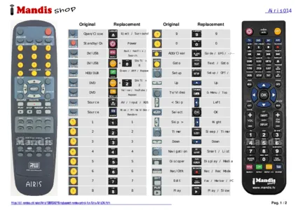 This remote control fully replaces your Airis014 and offers all the functions of the original.