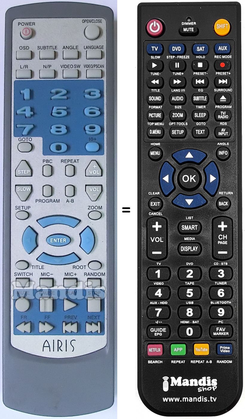Remote control to replace the original and all its functions.