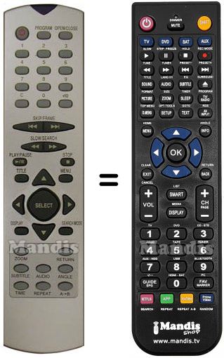 Below, we will show you the correspondence between each button on the original remote control and the button that performs the same function on the replacement remote control. In some cases, you may need to press the SHIFT key before pressing another button to perform certain actions. These additional functions are often not widely used and are included to facilitate understanding of the replacement remote control, or because the original remote control has more buttons than its equivalent.