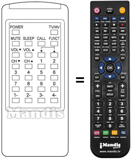 Remote control to replace the original and all its functions.