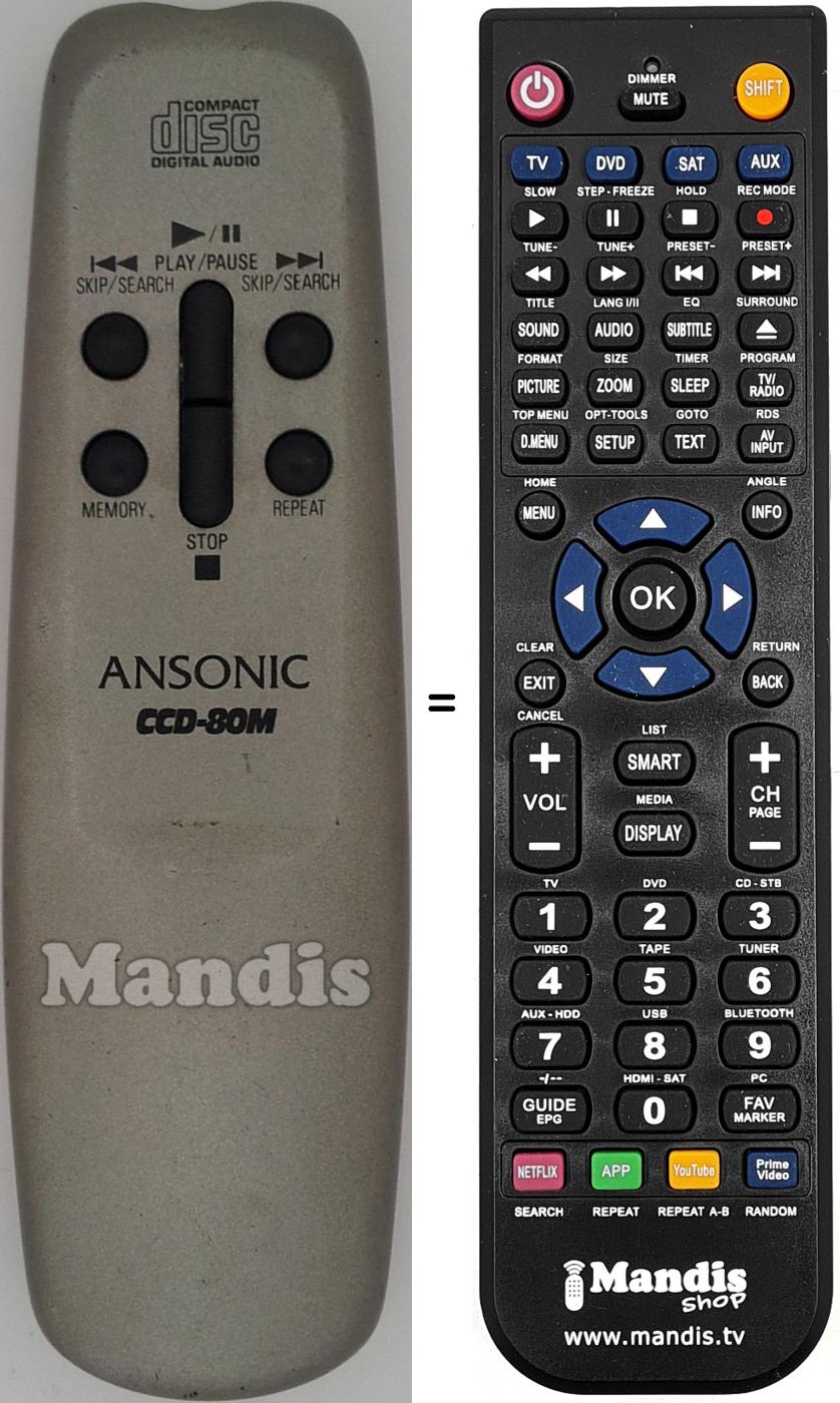 Home > Brands > Remote controls Ansonic > Remote control for ANSONIC CCD-80M