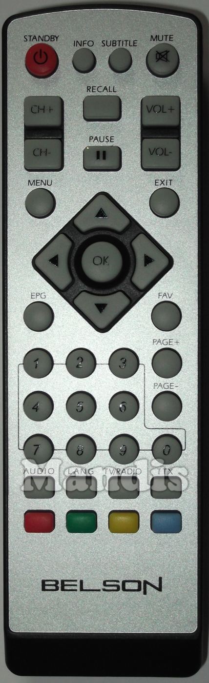Standby, Info, Subtitle, Mute, CH+, CH-, Recall, Pause, Vol+, Vol-, Menu, Exit, Up, Down, Left, Right, OK, EPG, FAV, 1, 2, 3, 4, 5, 6, 7, 8, 9, 0, Page+, Page-, Audio, Lang, TV/Radio, TTX, Red, Green, Yellow, Blue