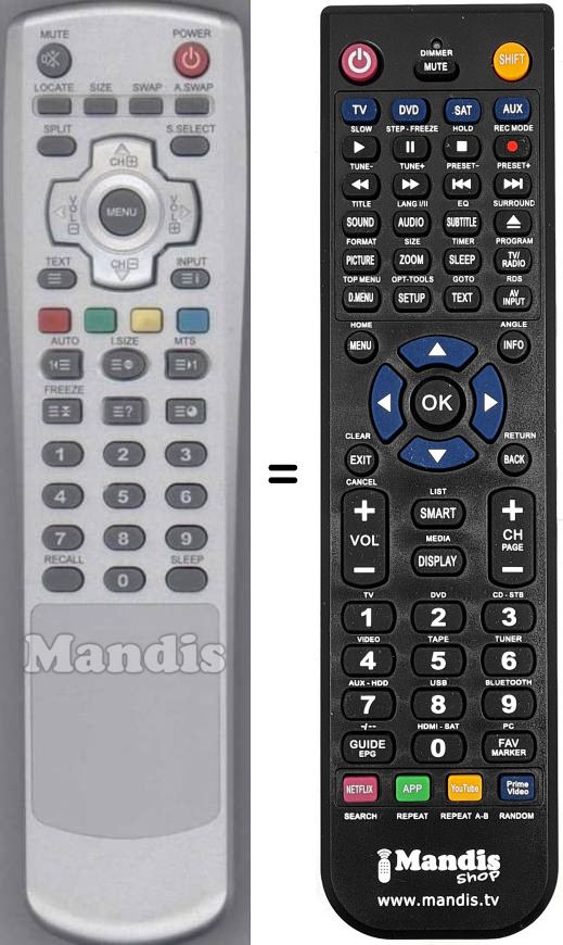 Remote control to replace the original and all its functions.