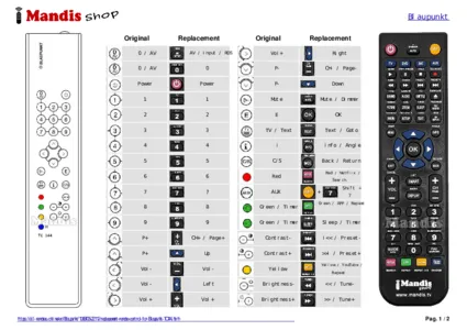 This remote control fully replaces your TC144 and offers all the functions of the original.