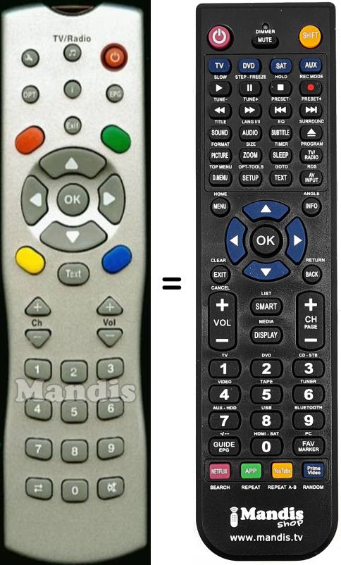 Remote control to replace the original and all its functions.