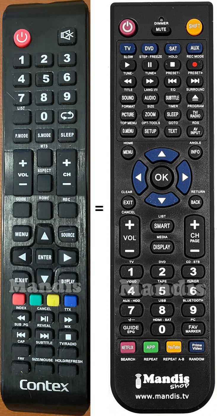 Below, we will show you the correspondence between each button on the original remote control and the button that performs the same function on the replacement remote control. In some cases, you may need to press the SHIFT key before pressing another button to perform certain actions. These additional functions are often not widely used and are included to facilitate understanding of the replacement remote control, or because the original remote control has more buttons than its equivalent.