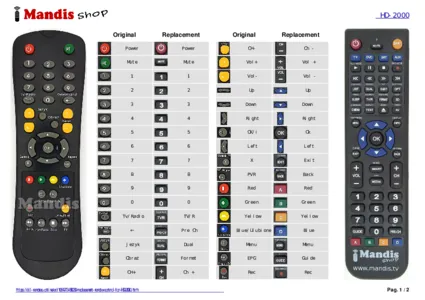 This remote control fully replaces your HD-2000 and offers all the functions of the original.