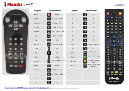 Below, we will show you the correspondence between each button on the original remote control and the button that performs the same function on the replacement remote control. In some cases, you may need to press the SHIFT key before pressing another button to perform certain actions. These additional functions are often not widely used and are included to facilitate understanding of the replacement remote control, or because the original remote control has more buttons than its equivalent.