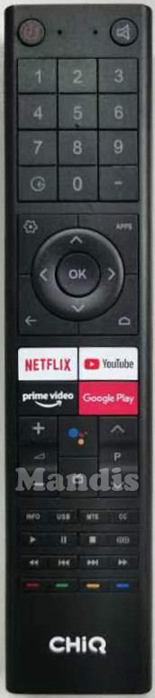 original remote control Chiq001 used for televisions for the brand Chiq. This is an original remote control.