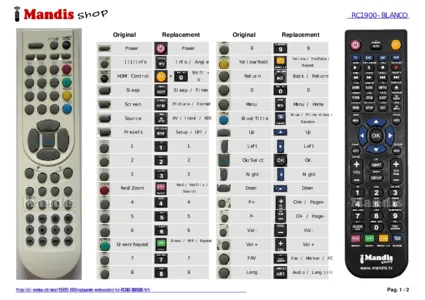 A document is included to help you use the new remote control easily, showing the button correspondence.