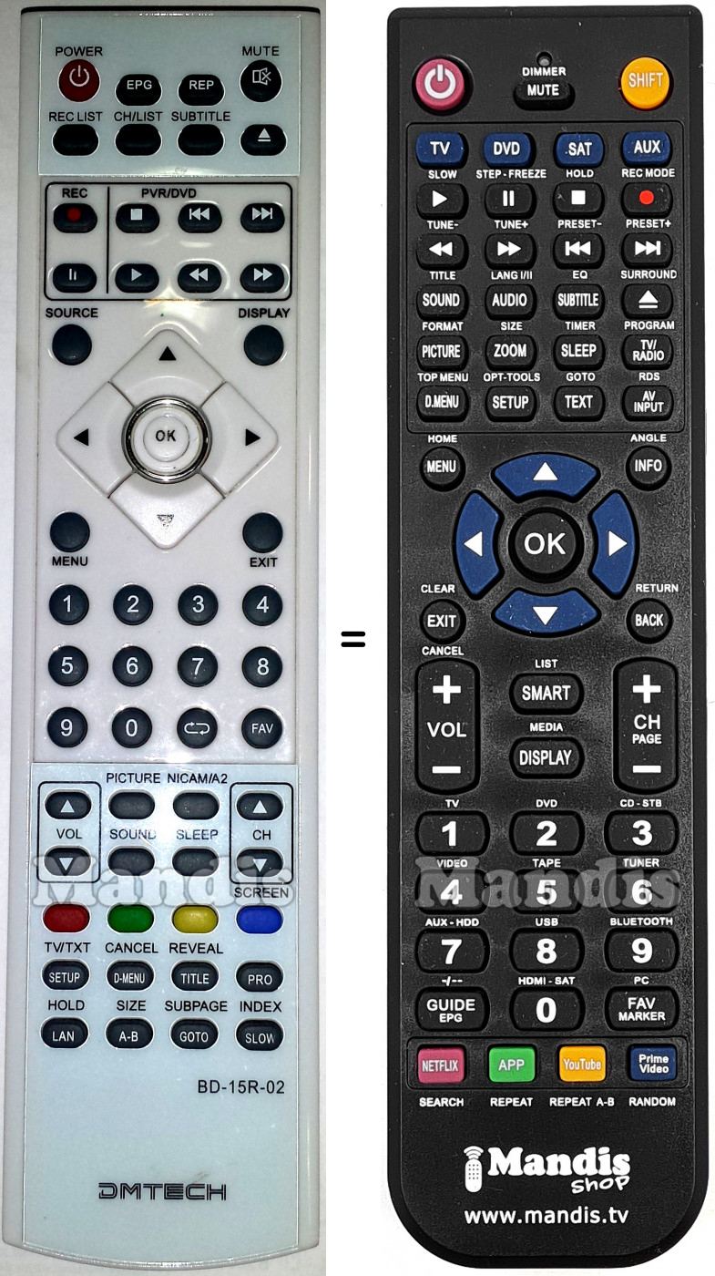 This remote control fully replaces your BD15R02 and offers all the functions of the original.