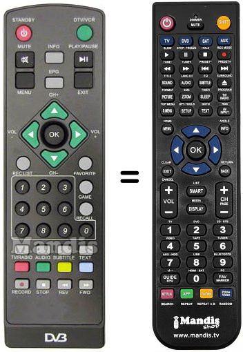Remote control to replace the original and all its functions.