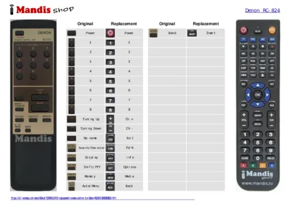 Below, we will show you the correspondence between each button on the original remote control and the button that performs the same function on the replacement remote control. In some cases, you may need to press the SHIFT key before pressing another button to perform certain actions. These additional functions are often not widely used and are included to facilitate understanding of the replacement remote control, or because the original remote control has more buttons than its equivalent.