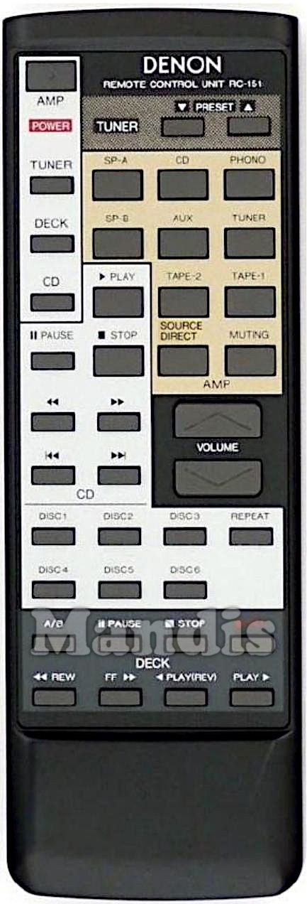 Replacement remote controls that replace in all its functions the remote DENON RC-151 (4990232007):
