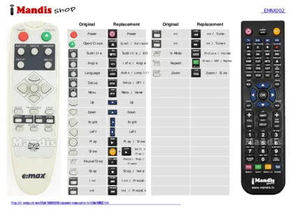 This remote control fully replaces your EMAX002 and offers all the functions of the original.