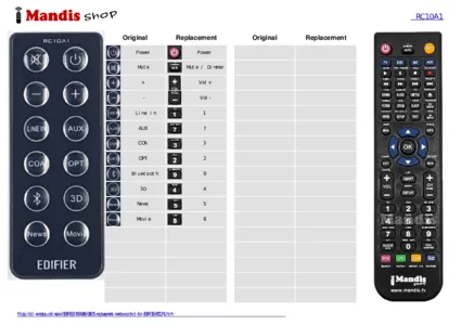 Home > Brands > Remote controls EDIFIER > Remote control for EDIFIER RC10A1