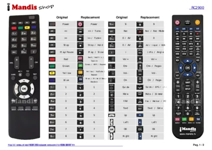 Below, we will show you the correspondence between each button on the original remote control and the button that performs the same function on the replacement remote control. In some cases, you may need to press the SHIFT key before pressing another button to perform certain actions. These additional functions are often not widely used and are included to facilitate understanding of the replacement remote control, or because the original remote control has more buttons than its equivalent.