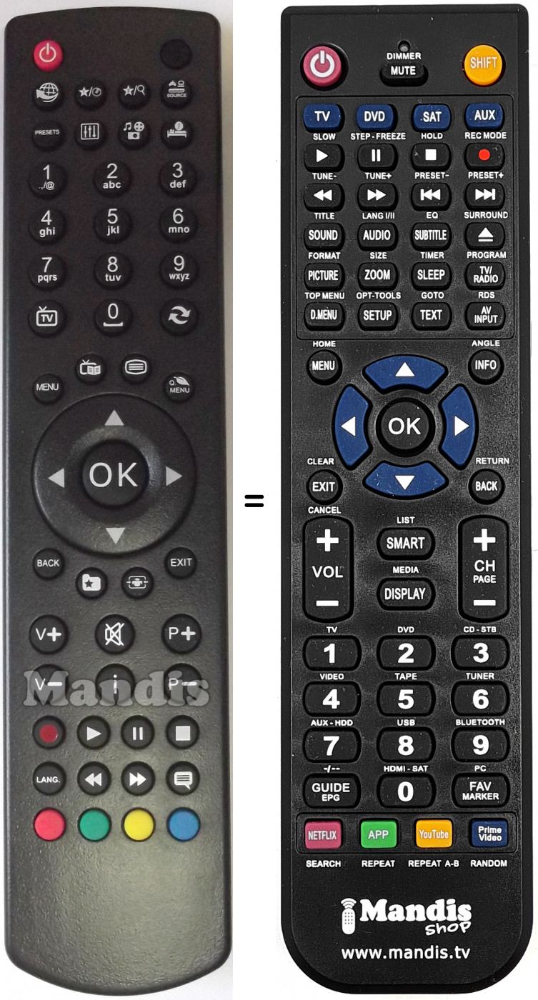 A document is included to help you use the new remote control easily, showing the button correspondence.