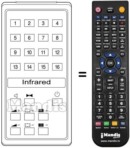 Remote control to replace the original and all its functions.