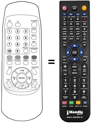 Remote control to replace the original and all its functions.