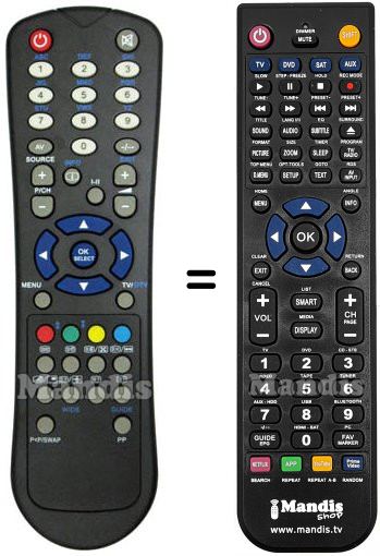 Below, we will show you the correspondence between each button on the original remote control and the button that performs the same function on the replacement remote control. In some cases, you may need to press the SHIFT key before pressing another button to perform certain actions. These additional functions are often not widely used and are included to facilitate understanding of the replacement remote control, or because the original remote control has more buttons than its equivalent.