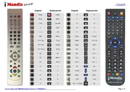 A document is included to help you use the new remote control easily, showing the button correspondence.