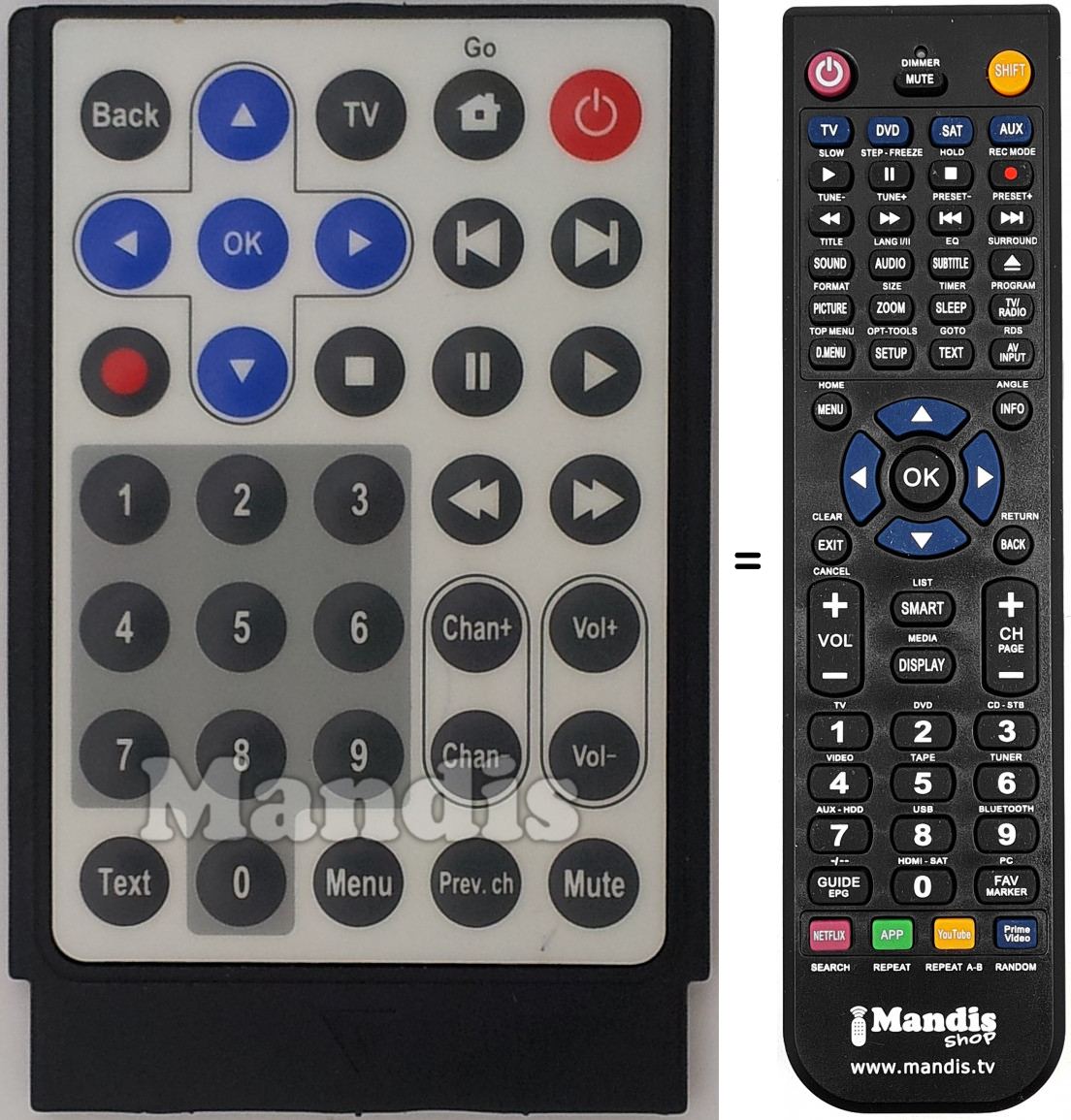 When we send the remote control, we also send a document with the correspondence of the keys between the replacement and the original remote controls which allows you to know how to perform the functions of the original remote. Sometimes it is available on the web so you can download it.