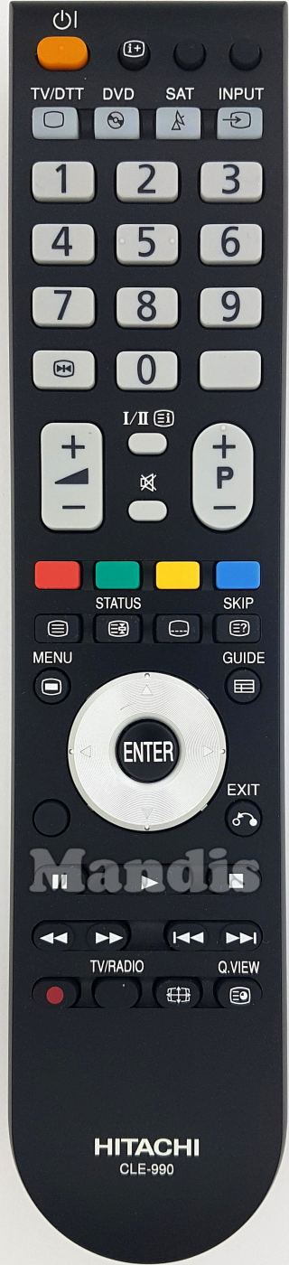 original remote control CLE990 (07650NX010) used for televisions for the brand Hitachi. This is an original remote control.