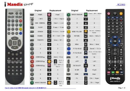 A document is included to help you use the new remote control easily, showing the button correspondence.