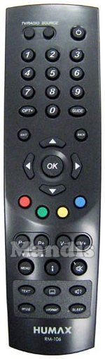 original remote control RM-106 (0320200007) used for televisions for the brand Humax. This is an original remote control.
