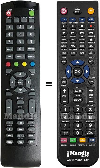 Below, we will show you the correspondence between each button on the original remote control and the button that performs the same function on the replacement remote control. In some cases, you may need to press the SHIFT key before pressing another button to perform certain actions. These additional functions are often not widely used and are included to facilitate understanding of the replacement remote control, or because the original remote control has more buttons than its equivalent.