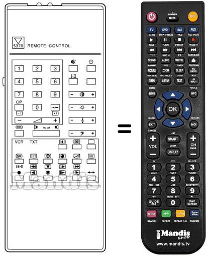 Remote control to replace the original remote RC5370 and all its functions.