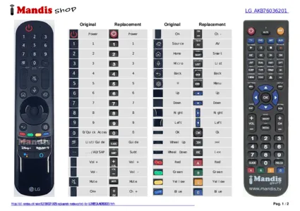 A document is included to help you use the new remote control easily, showing the button correspondence.