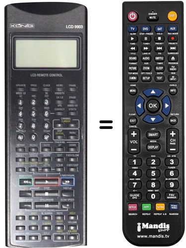 Remote control to replace the original and all its functions.