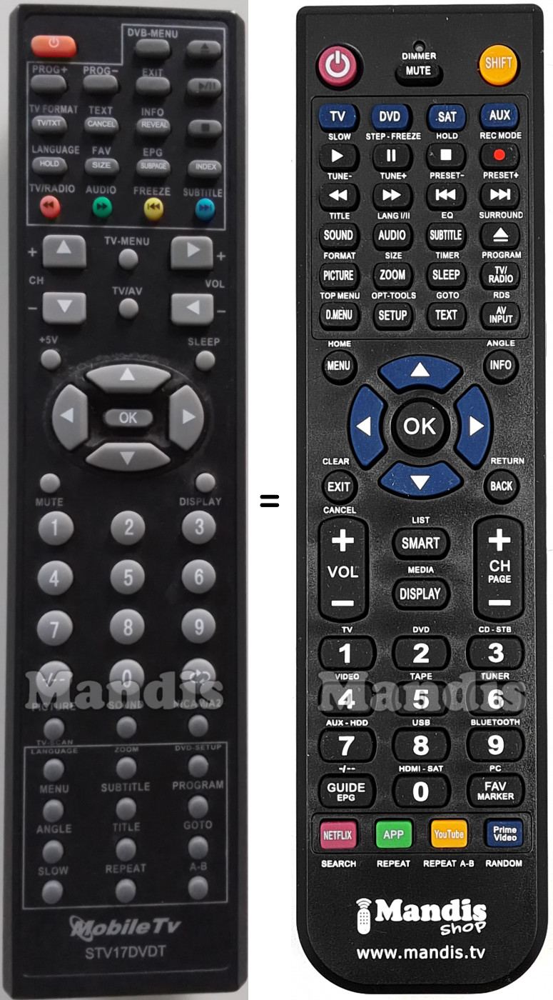 This remote control fully replaces your STV17DVDT-1 and offers all the functions of the original.