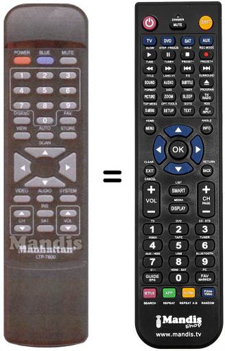 Remote control to replace the original and all its functions.