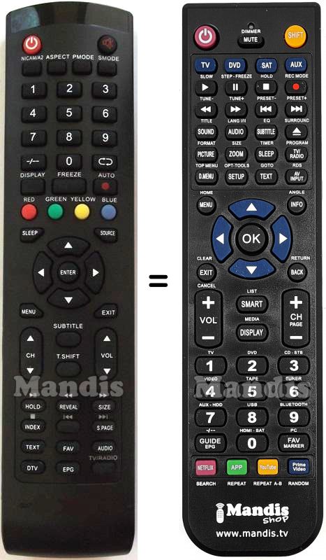 Below, we will show you the correspondence between each button on the original remote control and the button that performs the same function on the replacement remote control. In some cases, you may need to press the SHIFT key before pressing another button to perform certain actions. These additional functions are often not widely used and are included to facilitate understanding of the replacement remote control, or because the original remote control has more buttons than its equivalent.