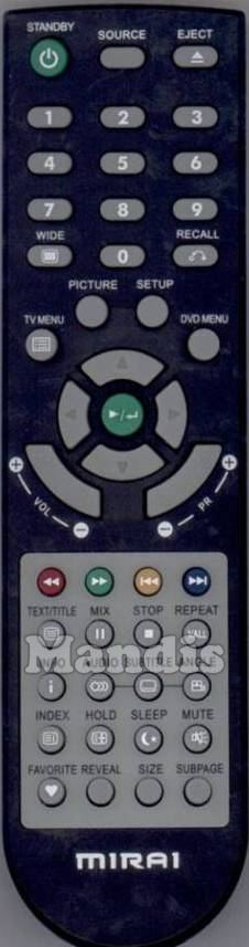 original remote control RC004 used for lcd/tft televisions for the brand Mirai. This is an original remote control.
