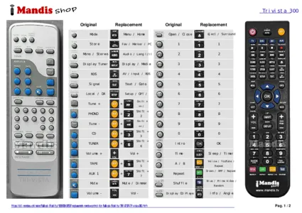 This remote control fully replaces your TRI-VISTA (Trivista 300) and offers all the functions of the original.