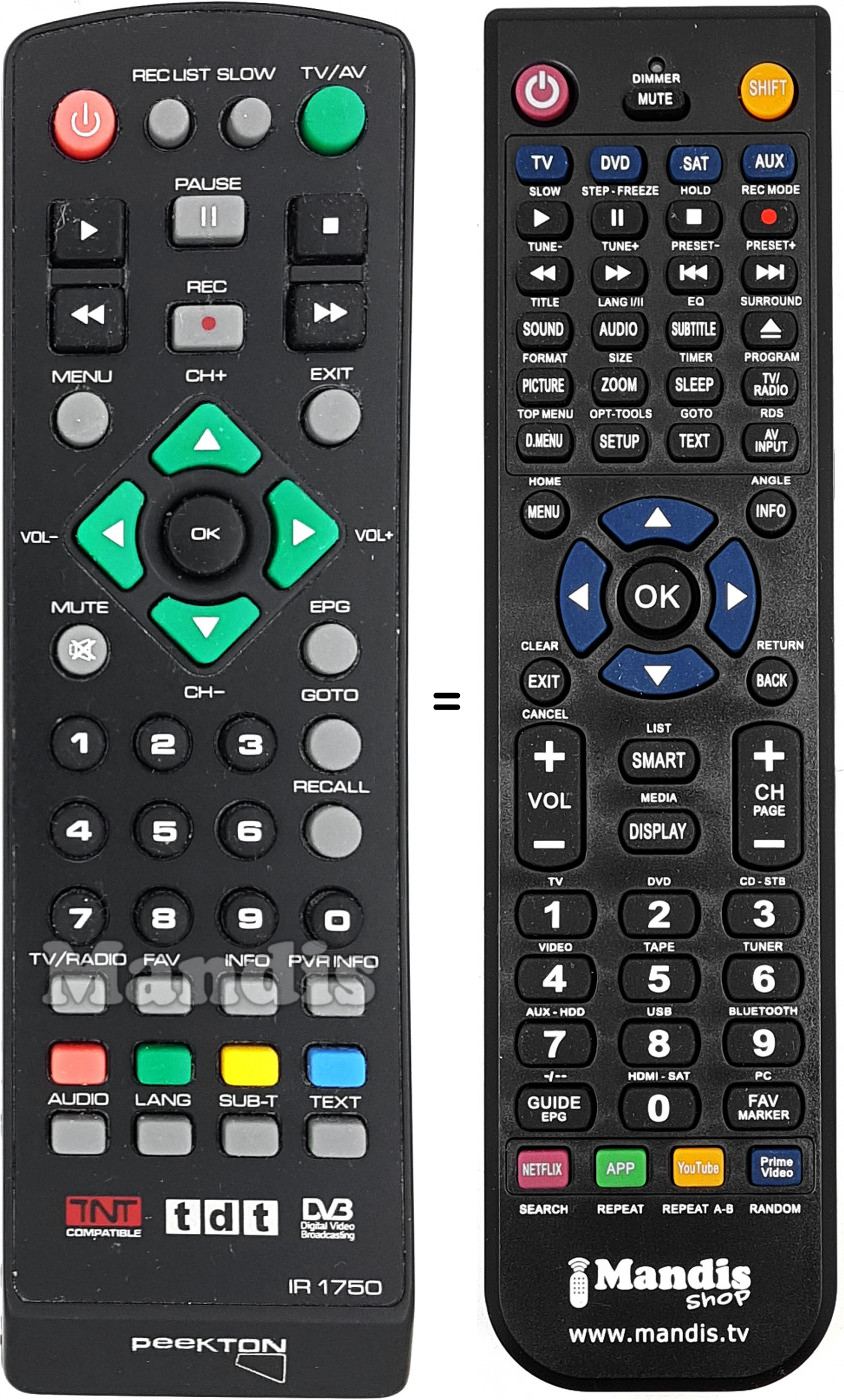 Remote control to replace the original and all its functions.